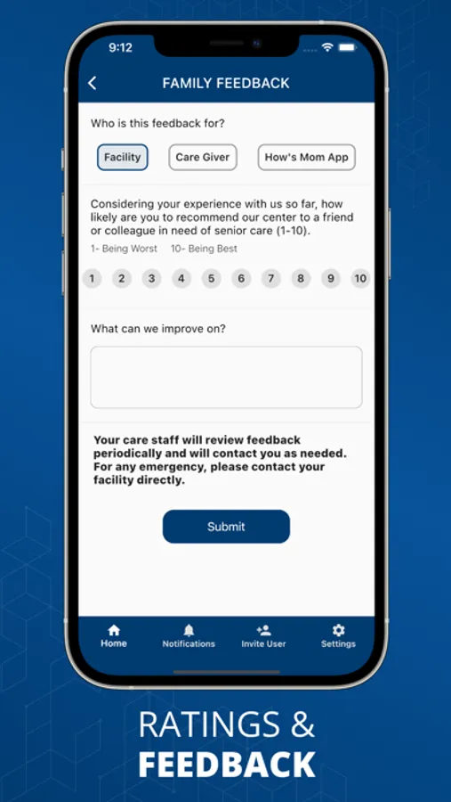 Family Five Star Feedback - rate your loved one’s care center and share your feedback directly with facility management.
