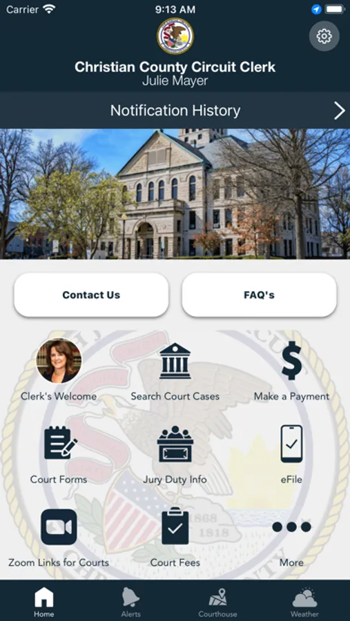 The Christian County IL Circuit Clerk mobile application is an interactive app developed to help improve communication with area residents. It adds important items at your fingertips such as alerts, contact information, court fees info, and more.