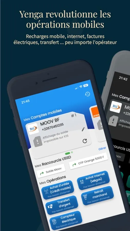 Yenga vous permet de recharger facilement vos crédits de communication chez tous les opérateurs.