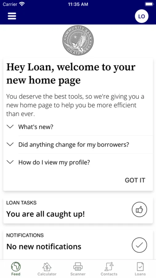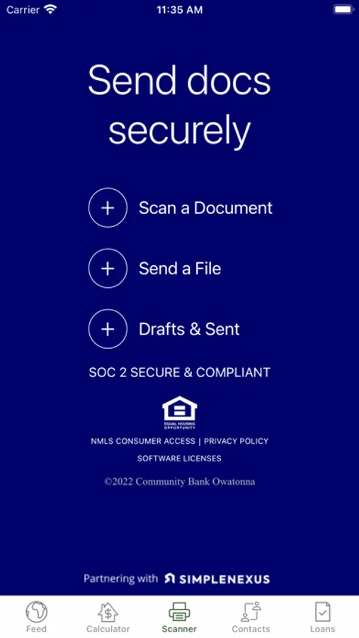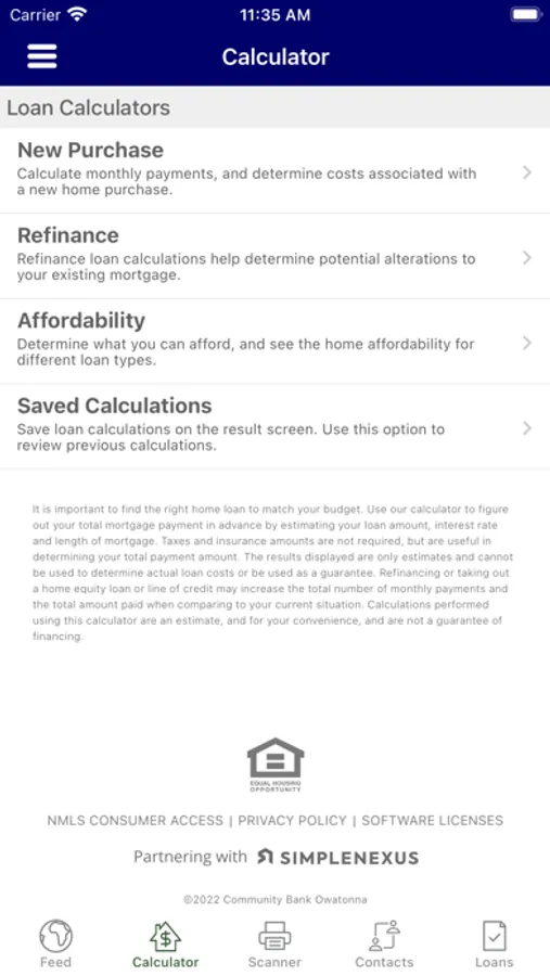 The app provides you with the tools to streamline your mortgage experience. Wherever you are, you can quickly calculate loan scenarios, complete an application, and upload loan documents. Stay in the know with status updates as your loan application progresses. Download today to enjoy the benefits of Community Bank Owatonna Mobile Mortgage!