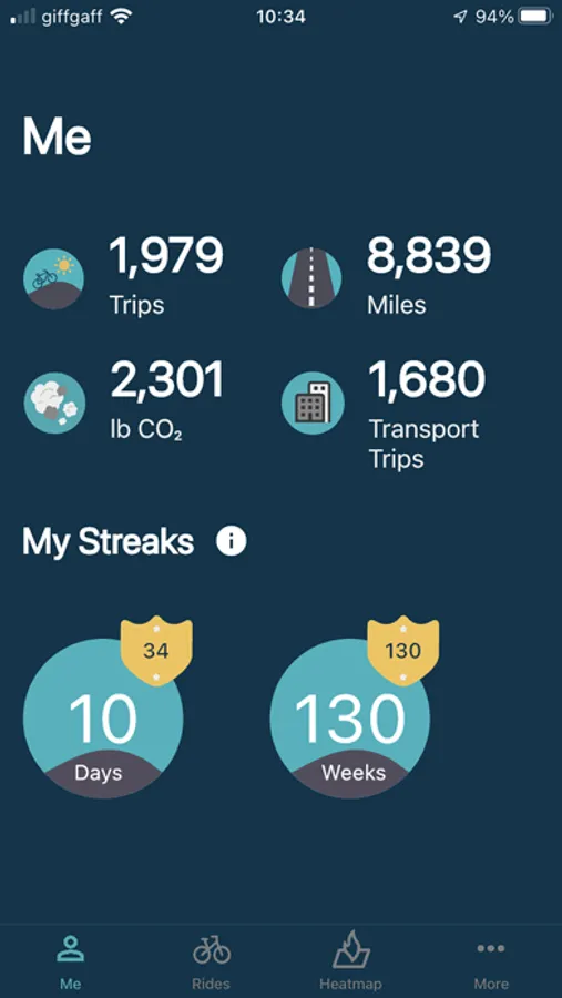 - Automatically tracks your rides - with zero effort you can see how much you're riding, track your stats, carbon savings, your riding streaks, and progress towards your goals.