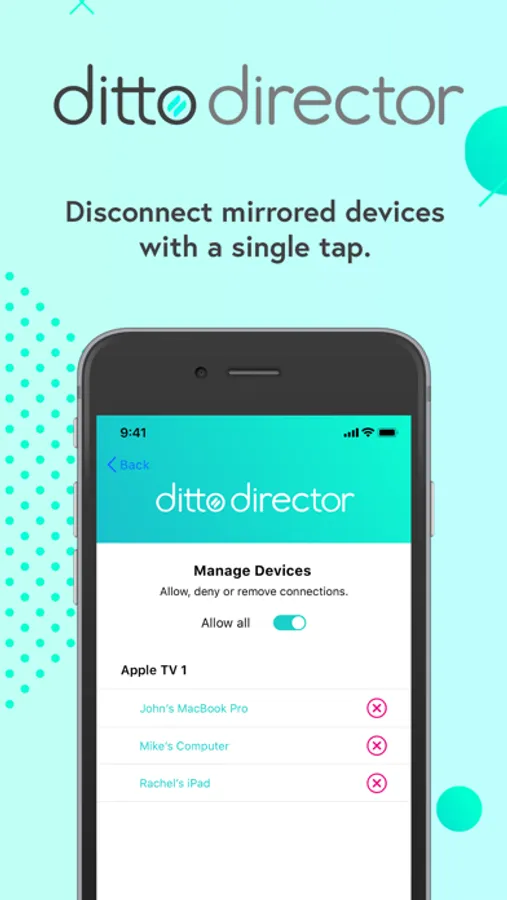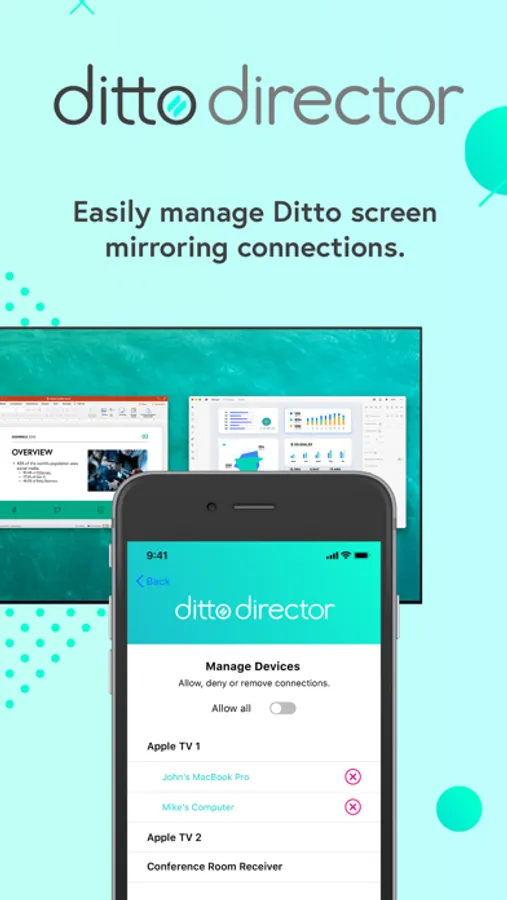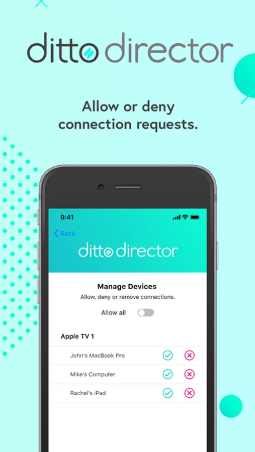 Allow or deny incoming screen mirroring connections to Ditto receivers with a single tap.