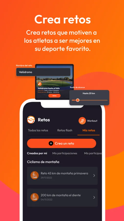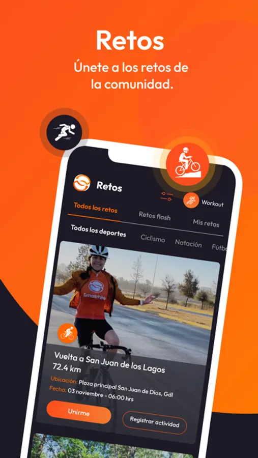 También incluye retos deportivos en donde te puedes sumar y la posibilidad de crear tus propios retos e invitar a otros.