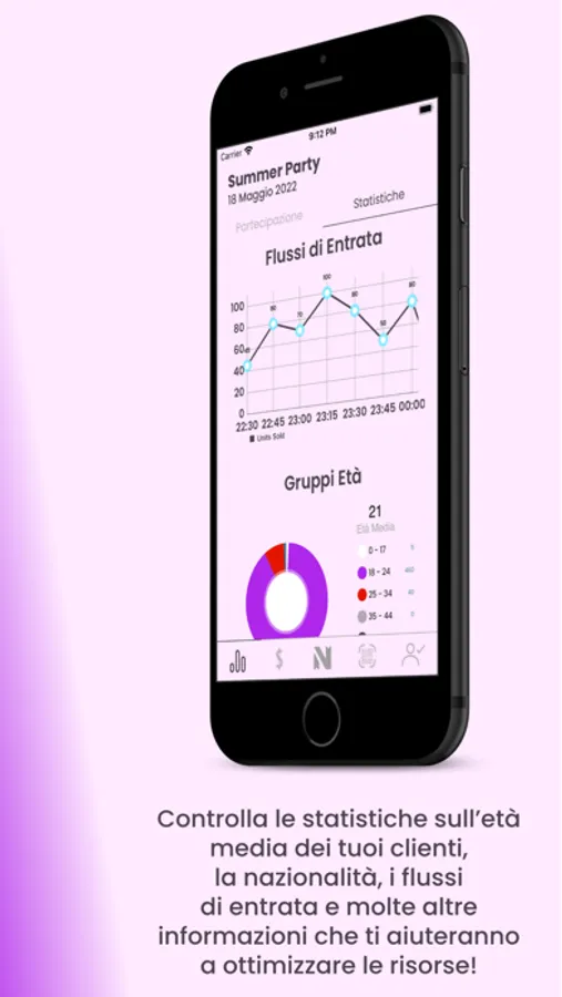 Con NightManager puoi vedere statistiche sulla partecipazione, sui dipendenti, sui flussi di entrata e molte altre.