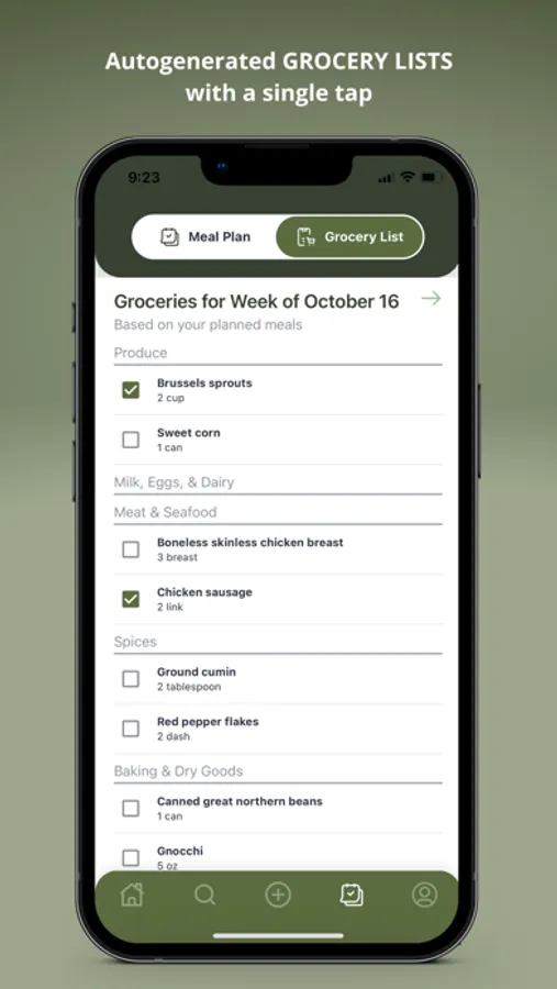 - Our grocery list tool autogenerates a grocery list with all the ingredients needed for the recipes