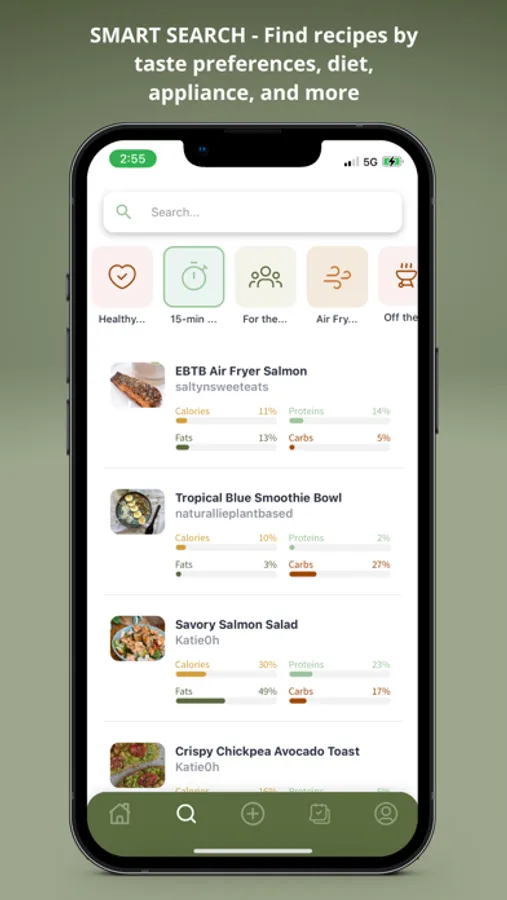 - Search for all types of recipes by taste preferences, by diet, or using our tags like 15-minute