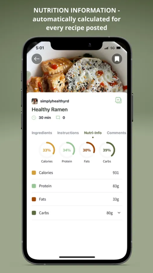 - Calorie and macronutrient information is automatically generated for each recipe posted on