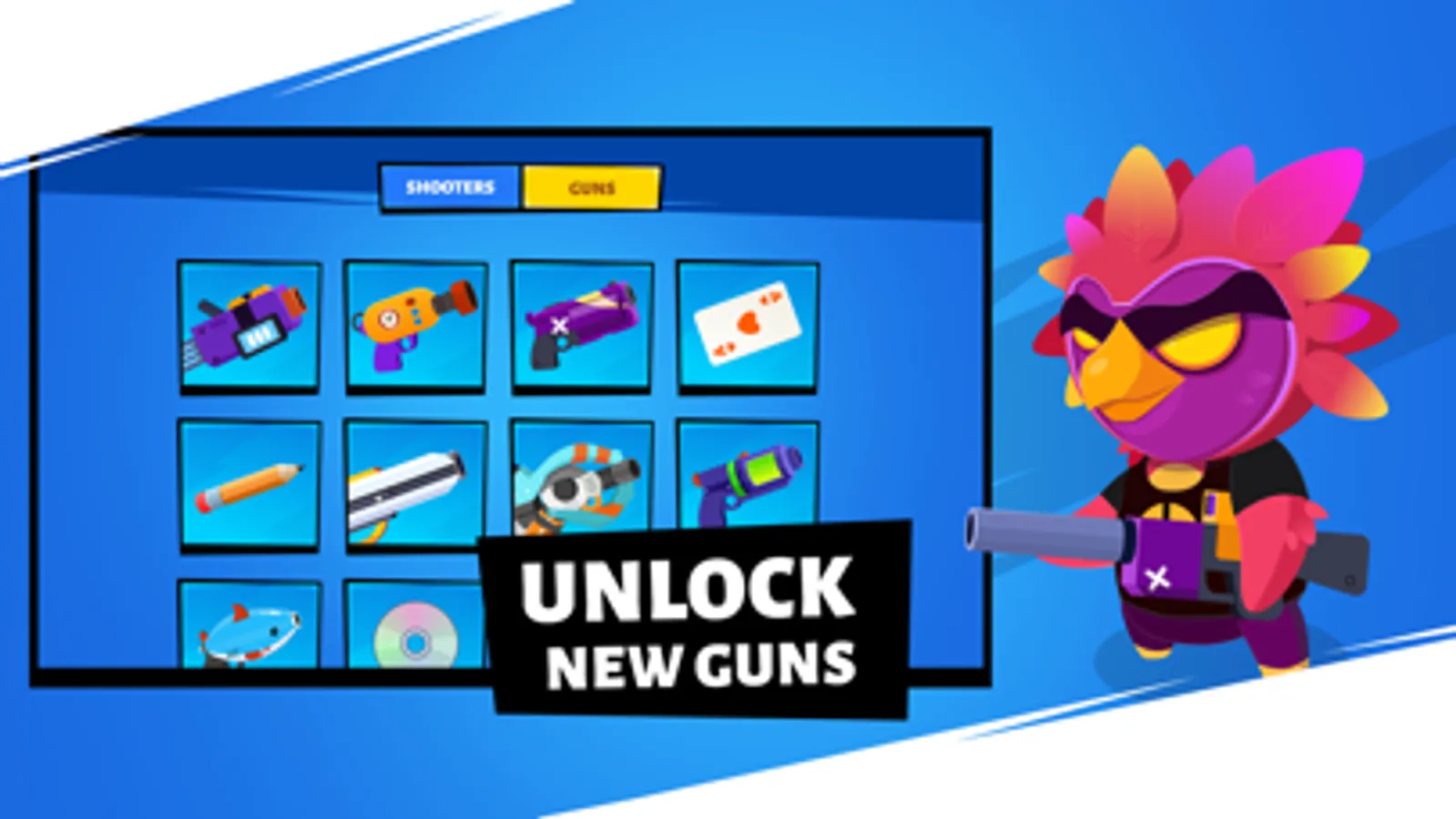 Get daily rewards. Fight to unlock new shooters, guns, skills, and game modes!