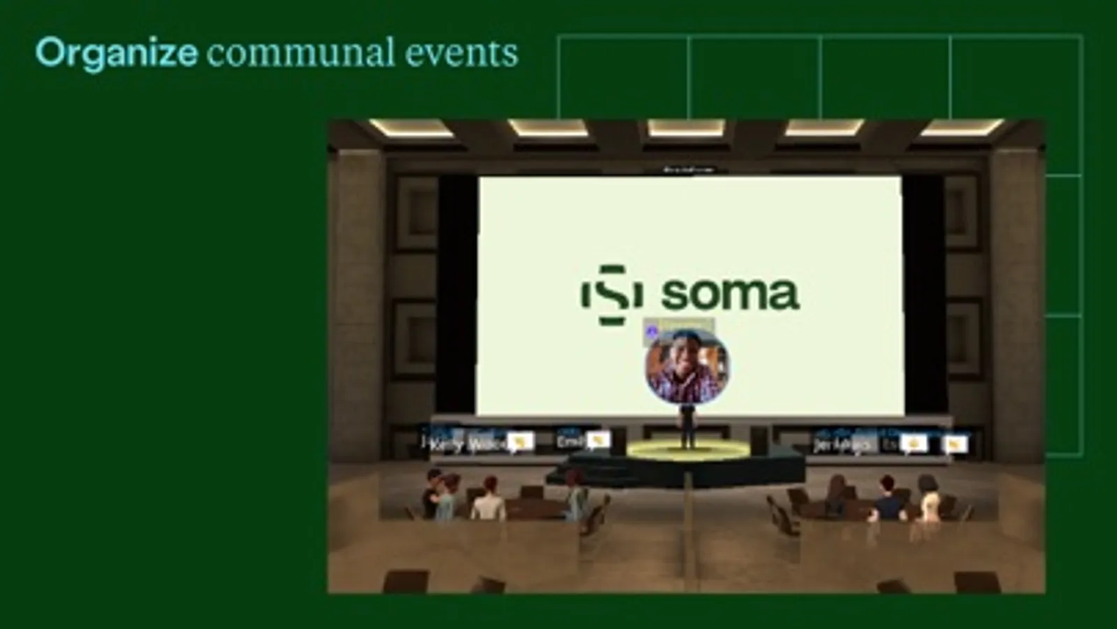 Soma is here to bring people together and allow teams to work in different places and time zones without losing that sense of community. Combining the perks of working together, even from afar - we emphasize the importance of changing where you work, not how you work. More than a virtual office, Soma provides a productive workspace that replicates the energy of an in-person office culture.