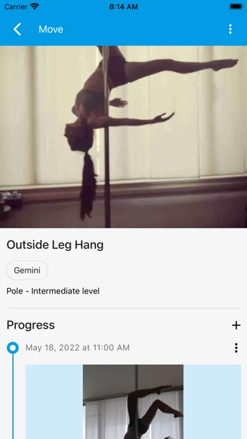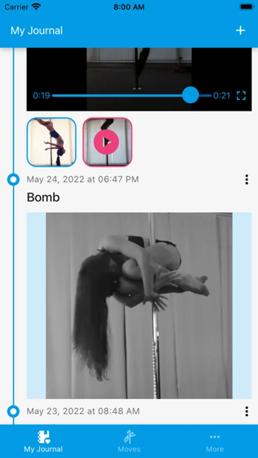 Acrobacy is a digital journal for pole dance, aerial and circus skills training. It offers easy ways to catalogue moves, organize training notes and media, log workouts, and visualize progress.