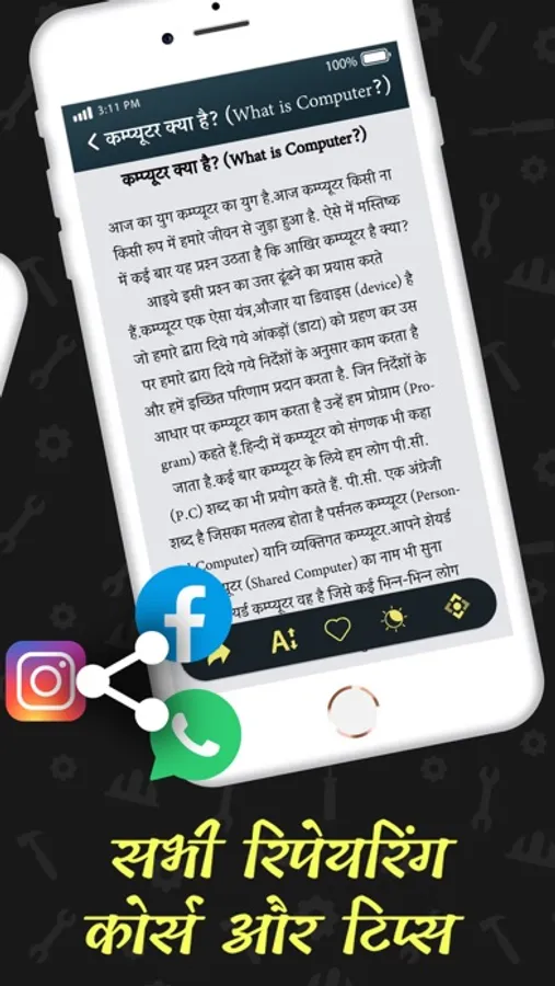 हिंदी और अंग्रेजी ऐप में मोबाइल रिपेयर कोर्स आपको कई सेल फोन रिपेयरिंग हिंदी टिप्स प्रदान करता है जैसे कि व्यावहारिक समस्या निवारण, मोबाइल अनलॉक करना ताकि आप इसे सीख सकें और पैसा कमा सकें।