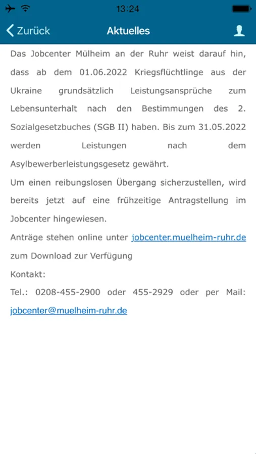 Bitte beachten sie, dass der Inhalt der Jobcenter Mülheim an der Ruhr App im Laufe der Zeit immer weiter an Ihre Bedürfnisse angepasst wird.