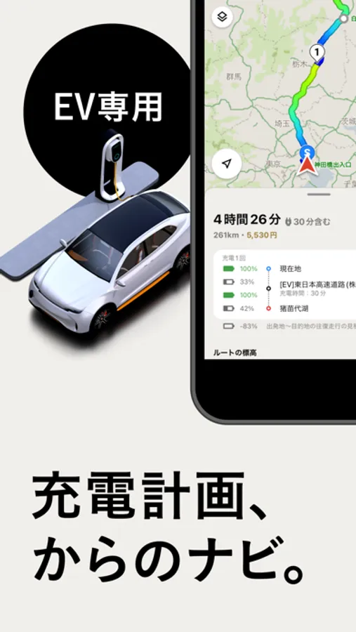EVカーナビ by NAVITIMEは電気自動車(EV)のための専用カーナビアプリです!