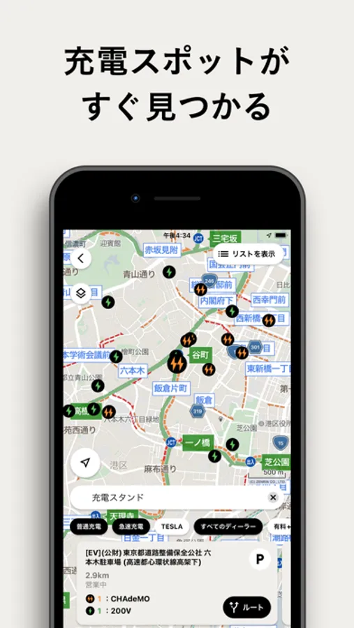 EVカーナビは、充電スタンドの検索から音声案内までこのアプリ1つで電気自動車でのドライブをサポートします!
