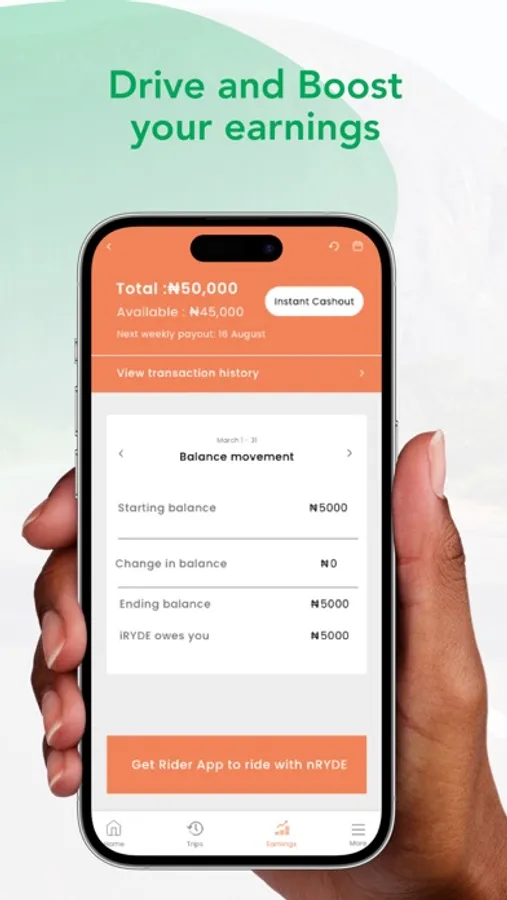 Can withdraw your money immediately after a trip with our instant cashout system
