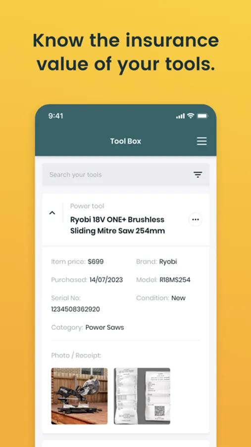 With all your tool information easily at hand, you can also provide proof of ownership for dispute resolution and insurance claims if your tools are lost or stolen.