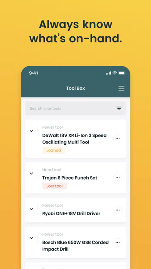Keep track of every power tool, hand tool and piece of equipment in just a few taps.