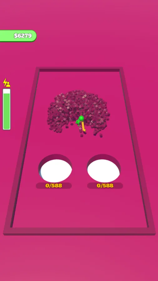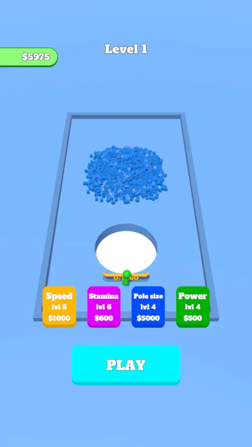 Push blocks into the holes. Impossible to do this from a first attempt as character is weak but as you push more blocks you earn more money to buy some upgrades.