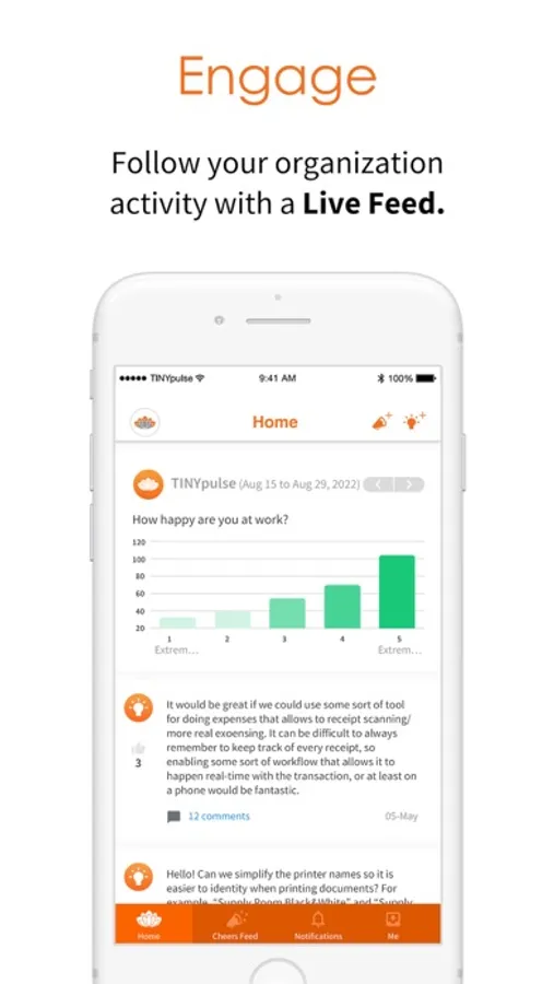 The TINYpulse by Limeade mobile app is designed to help support the different work environments of employees today, and allows users to:
