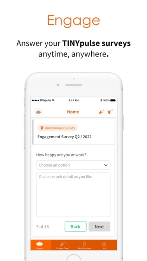 TINYpulse by Limeade helps create thriving work cultures by making employees feel valued and heard. It’s powerful surveying tools, varying levels of anonymity, and a library of research-backed survey templates allows organizations to gather honest, actionable feedback from employees. With in-platform tools like Cheers for Peers, Suggestions and Coach, employees and managers are empowered to build an engaged, goal-driven and appreciated workplace.