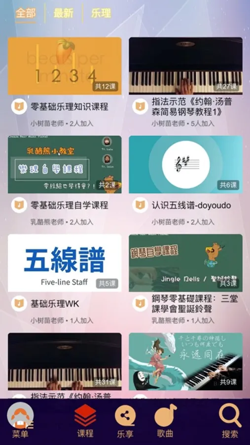这里有丰富的教学课程,各具特色的教学风格,以及多彩的有趣分享,更有意思的是您可以在家中练习乐曲,而乐果会智能的来陪伴您的练习,并给出评测,更多的体验等你来发现! 乐果将持续的更新更多的功能...