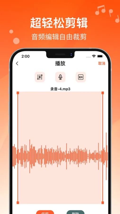 - 声音特效,变速, 变调等声音效果, 让录音更有趣。