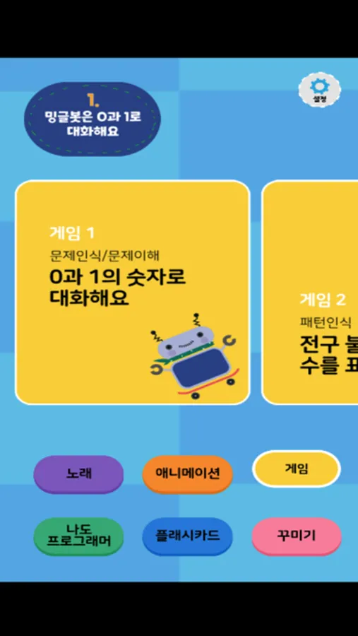 주요 내용: 컴퓨터의 기본 개념인 0과 1의 이진법의 개념을 이해하고 표현할 수 있는 게이미피케이션