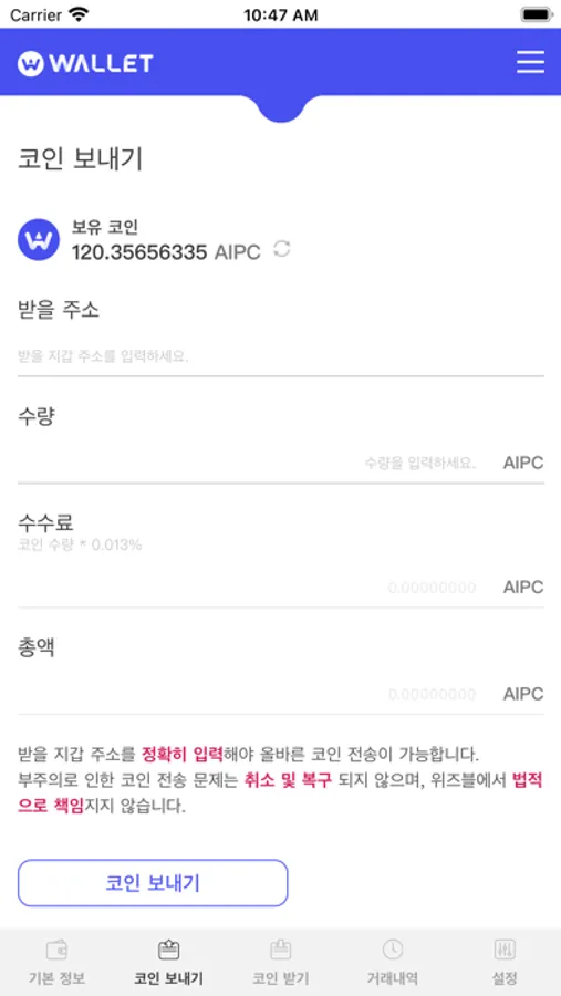 WIZBL Wallet으로 고객님의 AIPC 코인을 직접 관리해 보세요.