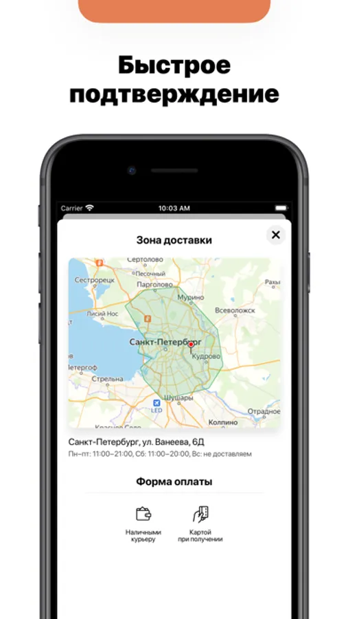 — Быстрый заказ с мгновенным подтверждением через приложение.