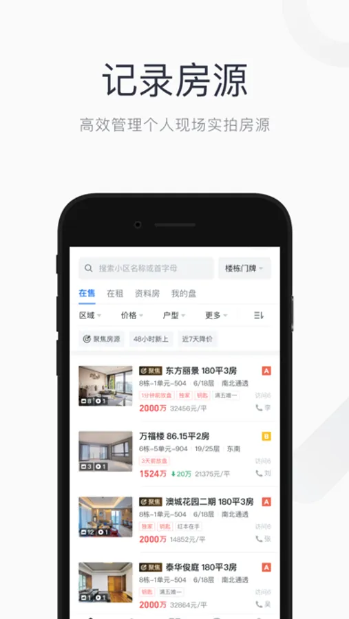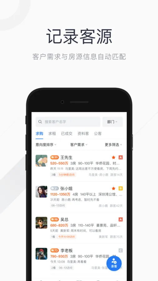 帮助房产经纪人快速录盘,需求匹配、展业速销、订阅推送、团队协作等专为经纪人设计的功能大幅提升工作效率,开单快人一步!