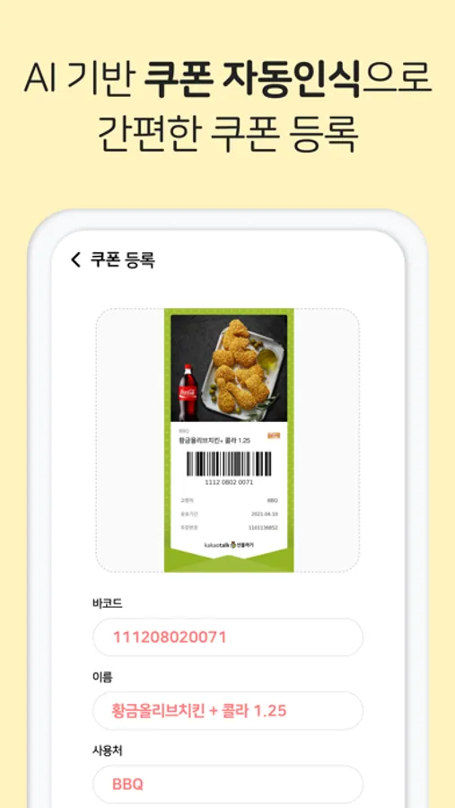 인공지능 AI 기반 기프티콘 자동인식 기능으로 이름, 사용처, 만료기한을 자동인식 합니다.