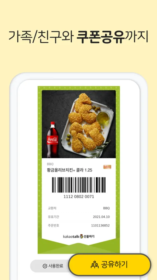 가족이 기프티콘을 사용하면 알림을 보내드립니다.