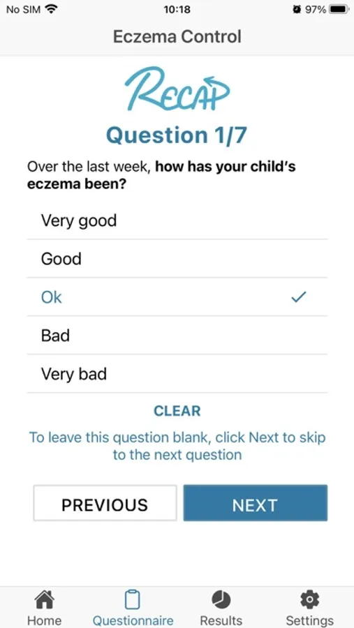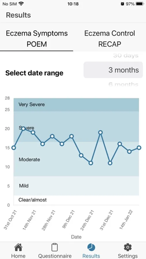 The My Eczema Tracker App is here to help you track your or your child’s eczema weekly. It uses two validated questionnaires that are used in eczema research called the Patient-Oriented Eczema Measure (POEM) and Recap of atopic eczema (RECAP). These questionnaires track eczema symptoms and eczema control. You can also keep your own notes alongside your questionnaires. By completing the questions once a week, you will get a complete picture of how the eczema has been, or you can just fill it in occasionally if you prefer.