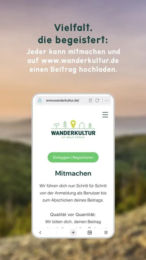 Wie funktioniert’s? Jeder kann auf www.wanderkultur.de einen Beitrag (Text, Bild, Audio, Video) hochladen. Danach werden die Punkte mit Wander- und Radtouren verknüpft und in der WanderKultur-App veröffentlicht. Die Routen können als Paket heruntergeladen werden und stehen samt Inhalt auch offine im Gelände zur Verfügung.