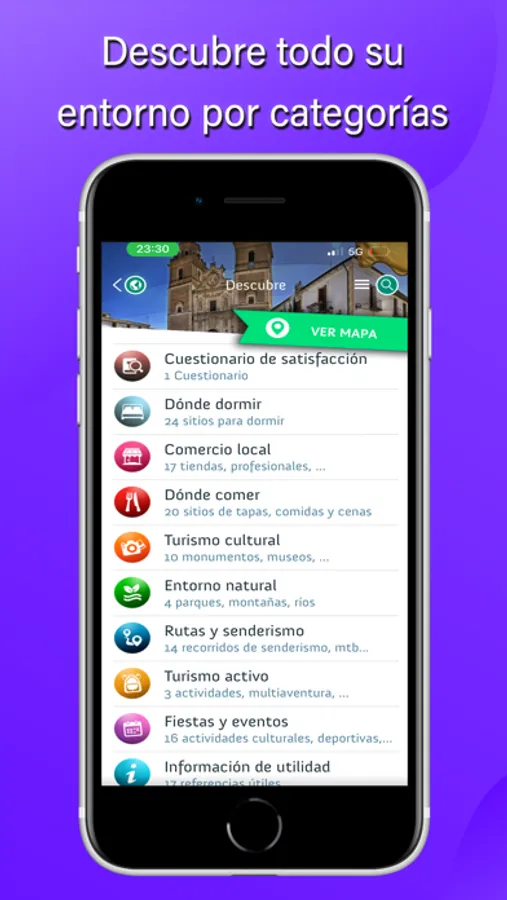 Esta app de viajes te hará disfrutar de contenidos organizados por categorías y subcategorías que te permitirán una navegación óptima por los mismos y así encontrar lo que más te interese. E incluso todos esos recursos tendrán la opción de como llegar.
