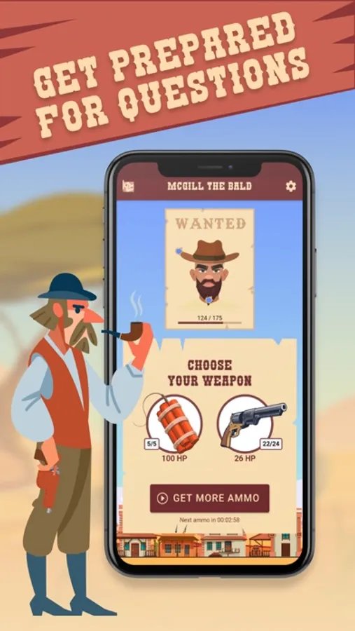 Are you ready to be the fastest gun in the Wild West quiz app? Speed and accuracy will be key when responding to trivia questions before other players. So, dust off your quick draw skills as time is not on your side! A perfect score requires fast reflexes, a sharp memory and knowledge on a variety of topics. Don't worry - it's fun for all levels of players; those who want a relaxing trivia challenge or those who are looking for a wild shootout! Getting the questions right is all up to you but, be warned: whoever hesitates, loses their chance at fame in the Wild West!