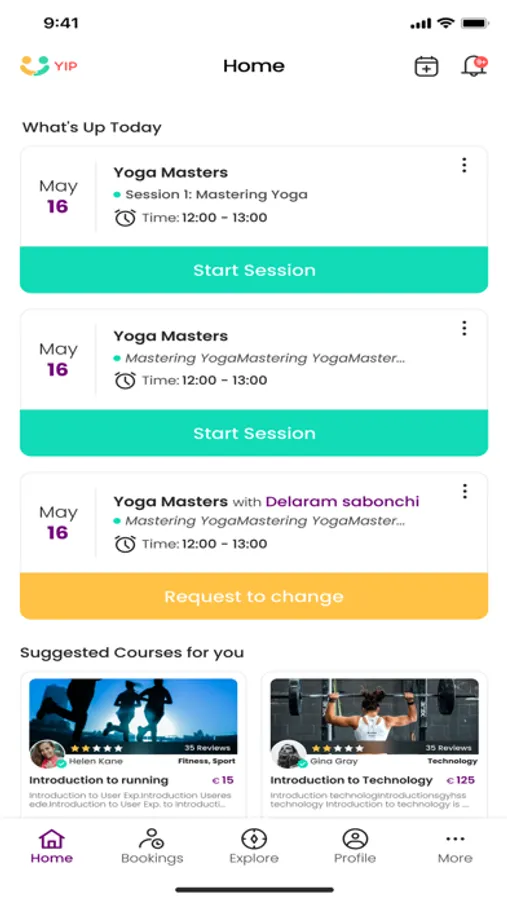 The YIP app includes the following features: