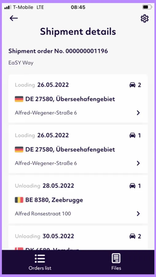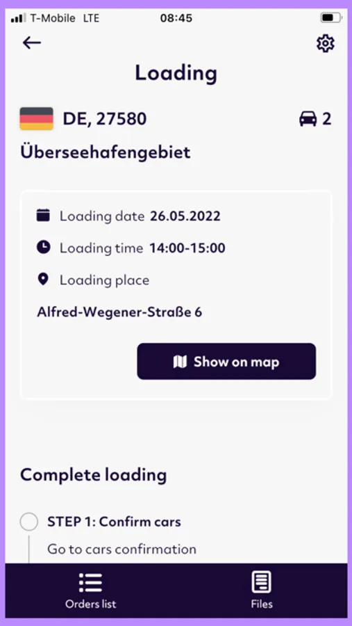 • Upload documents and photos of the transport (CMR, loading list, photos of vehicles).