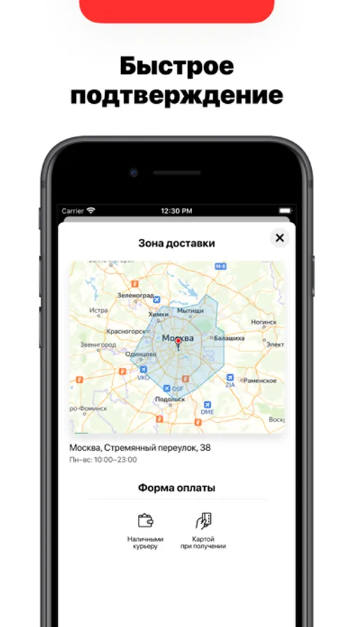 — Быстрый заказ с мгновенным подтверждением через приложение.