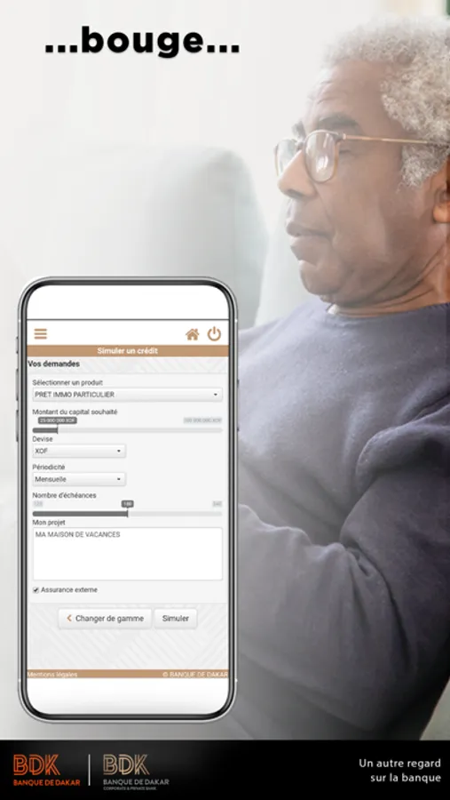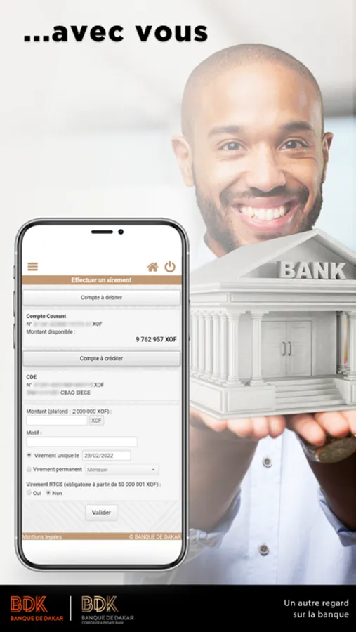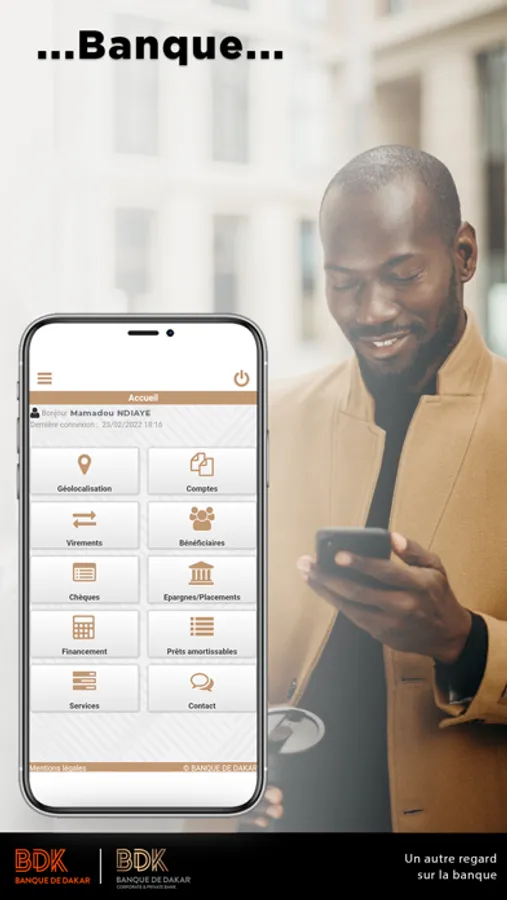 BDK MOBILE est un service de banque à distance permettant au client de consulter et de traiter à tout moment ses opérations bancaires quotidiennes à partir de son téléphone portable.