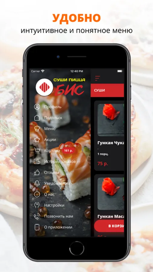 Суши Пицца Бис: приложение доставки еды на дом и в офис по городу Подольску.