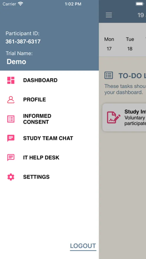 Upon download, the participants create a OAB CDUT account and complete the InformedConsent process. A series of screens explains the parameters of the study, including: