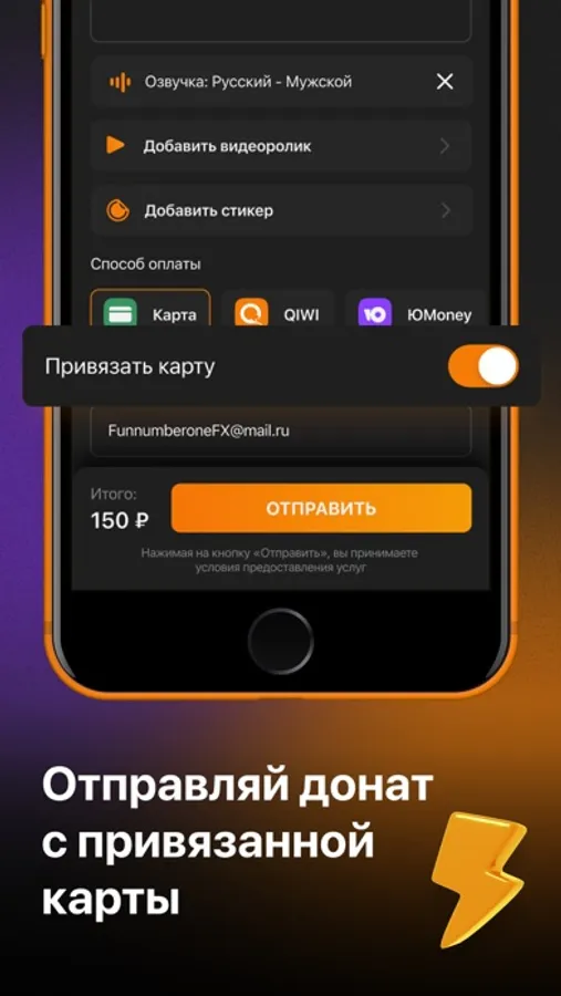 - Возможность привязать карту, чтобы в будущем донатить быстрее.