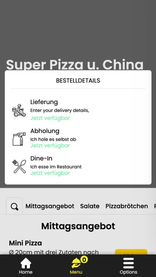 Mit der Super Pizza u. China Service Mobile App können leckeres Gericht bequem von zu Hause aus genießen. Stöbern Sie in unserer Speisekarte, wählen Sie die Gerichte aus, die Ihnen schmecken, und geben Sie Ihre Bestellung in Sekundenschnelle auf.