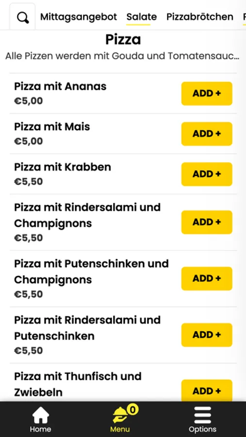 - Durchsuchen Sie die Speisekarte des Restaurants und sehen Sie sich alle anpassbaren Optionen im Voraus an