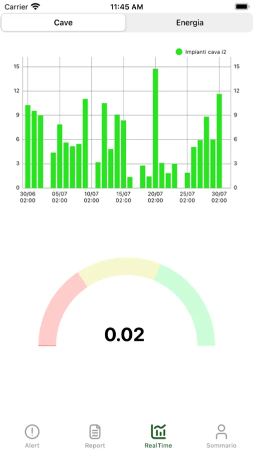 È possibile vedere gli stabilimenti con più alert visualizzando i vari pin sulla mappa ed anche controllare l'andamento dei propri stabilimenti attraverso appositi grafici in tempo reale.
