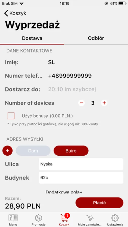 • установить желаемое время доставки заказа по указанному адресу;