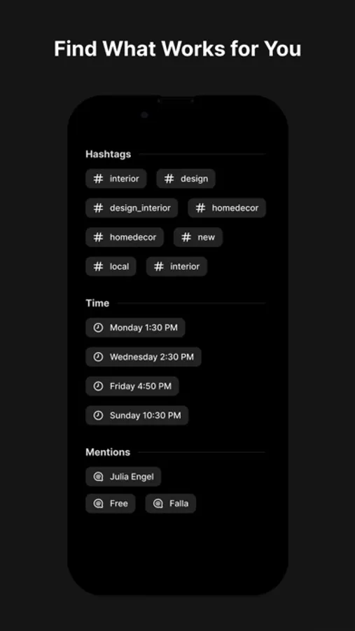 Find what's making your content shine and learn from historical data about your accounts. TaggerU will analyse your content, hashtags, mentions and followers’ activity to let you know how to achieve the highest reach. Make data-driven decisions and take the guesswork out of your plans!