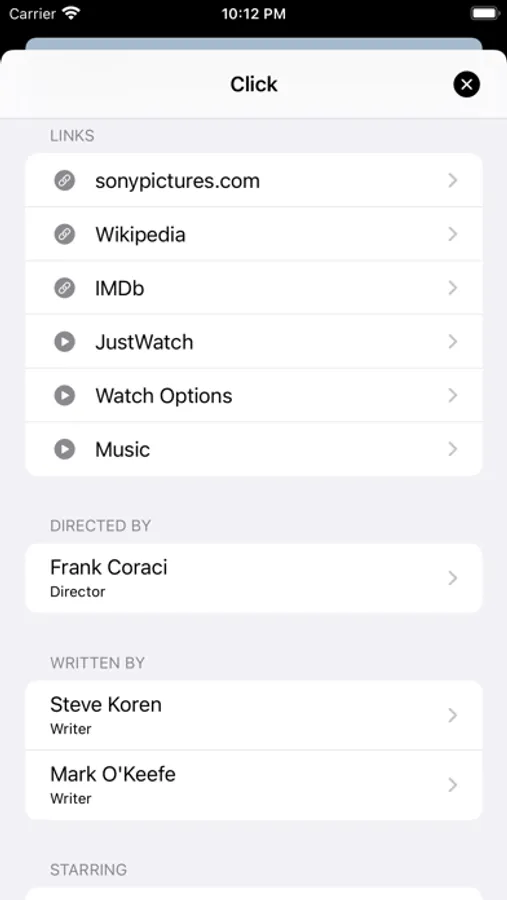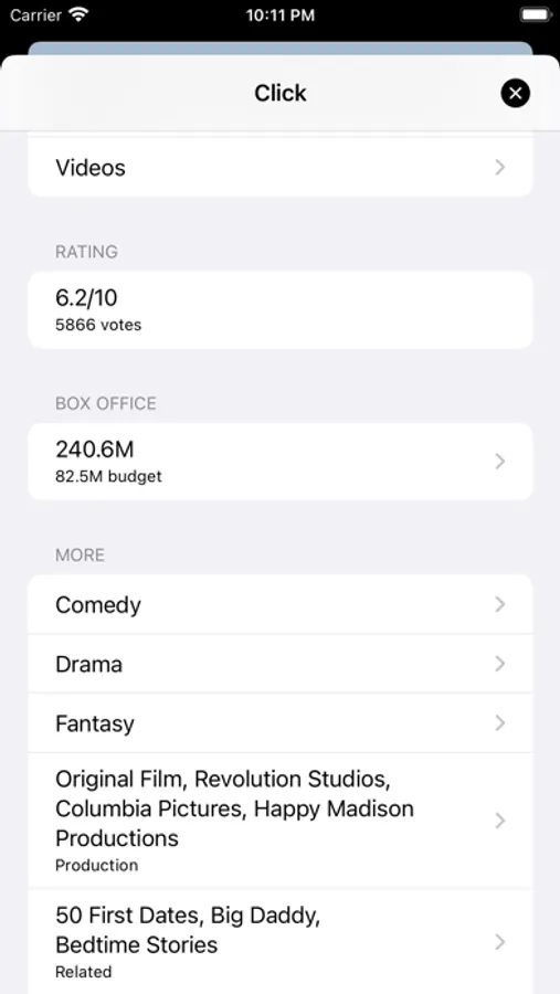 • You can instantly see the movie details in one click. Rating, trailers, box office details, similar movies, links, starring, credits and more.