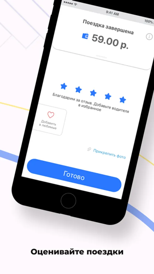 Поставьте оценку водителю, напишите отзыв или выберите реакцию из готовых шаблонов. Прикрепите фотографию к отзыву, оставьте чаевые или посмотрите детализацию платежей после поездки.